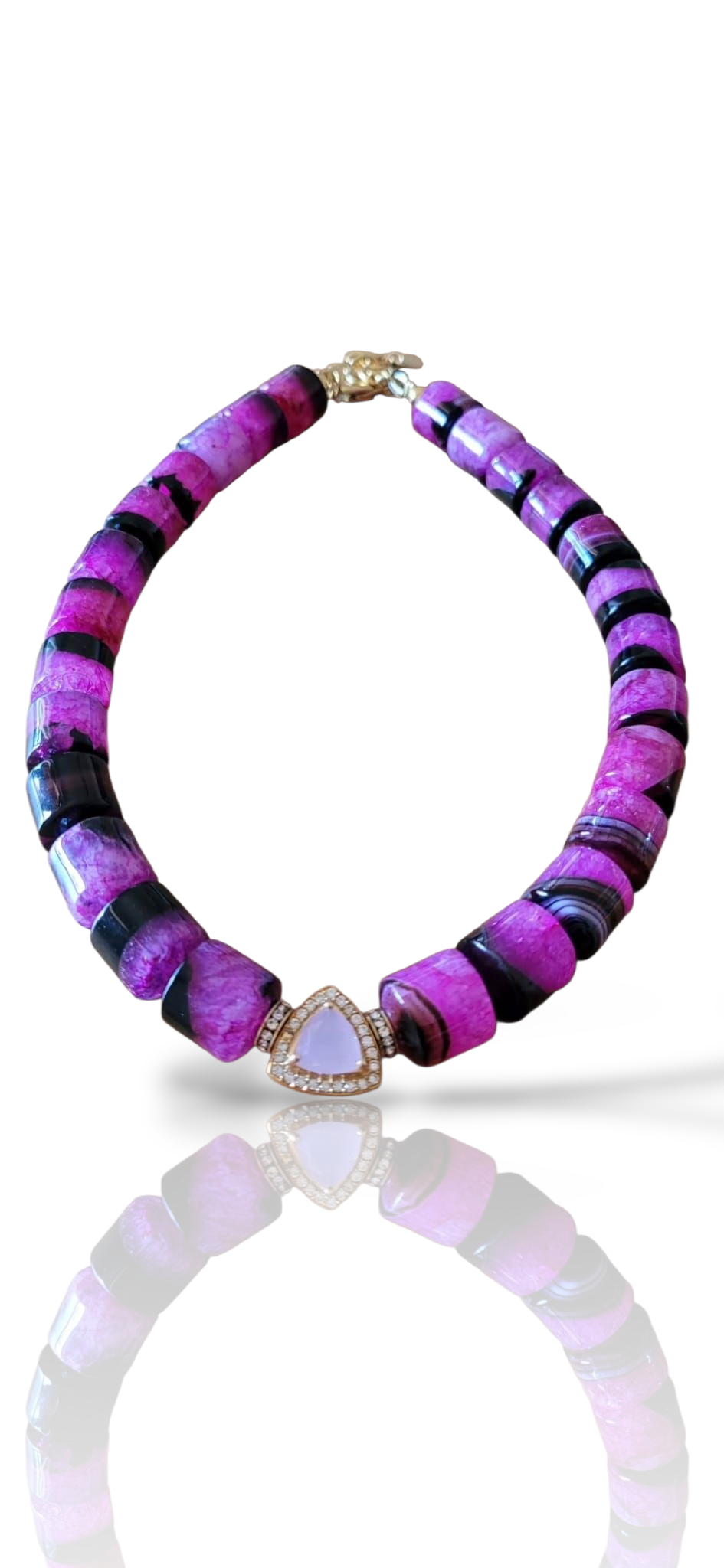 Magnifique collier en agathe rose tigrés minutieusement façonnés à la main dans notre atelier en France sur la Côte d'Azur.
