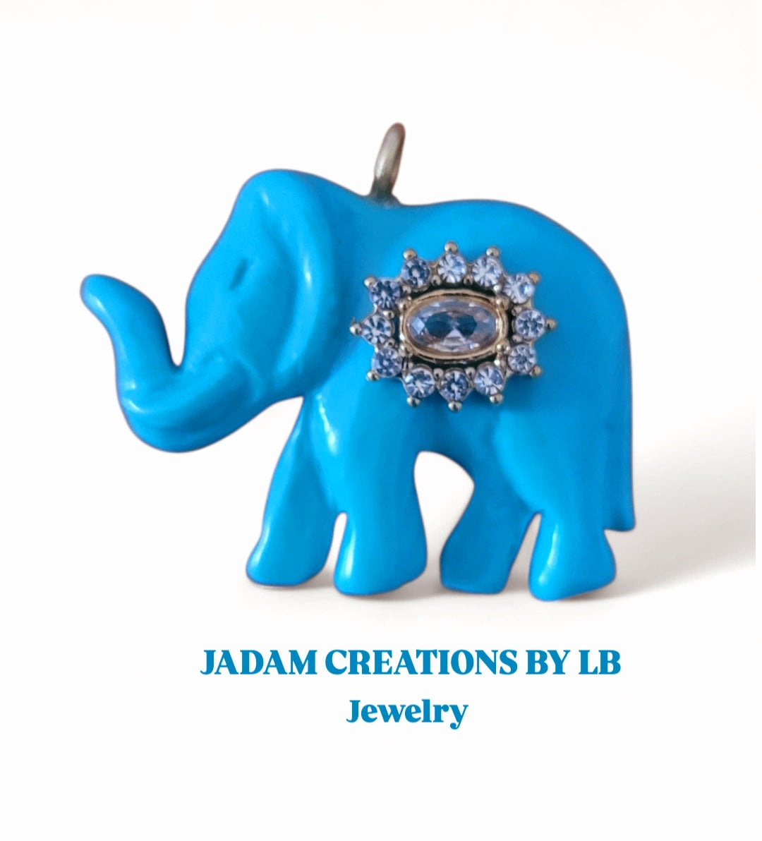 Collier en plauquee or 18k avec son elephant couleur turquoise en pierre reconstitué sertis d'un bindy en crystal et plaquee or.