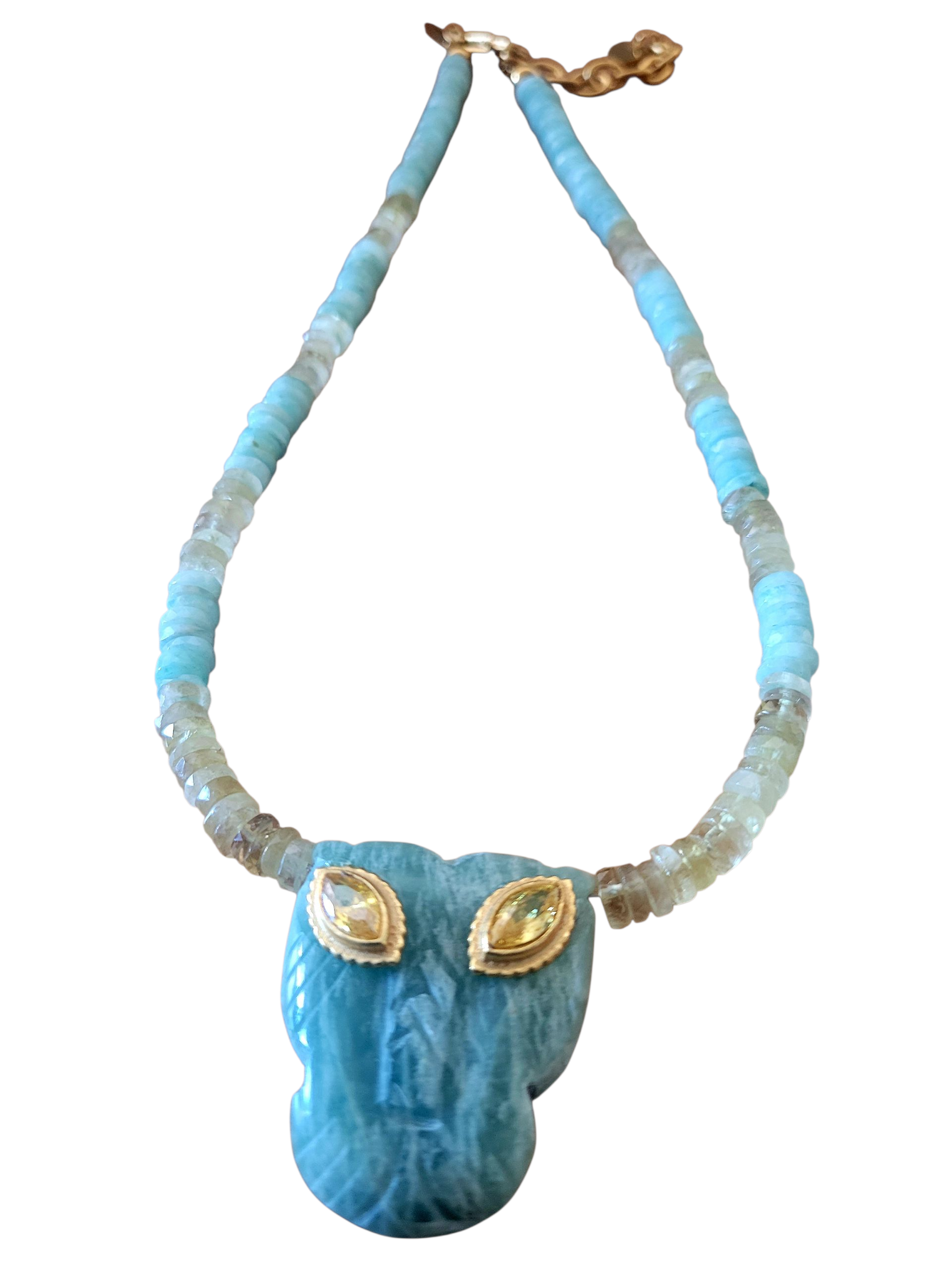 Somptueux collier LIONNE en pierre naturelle citrine et amazonite.