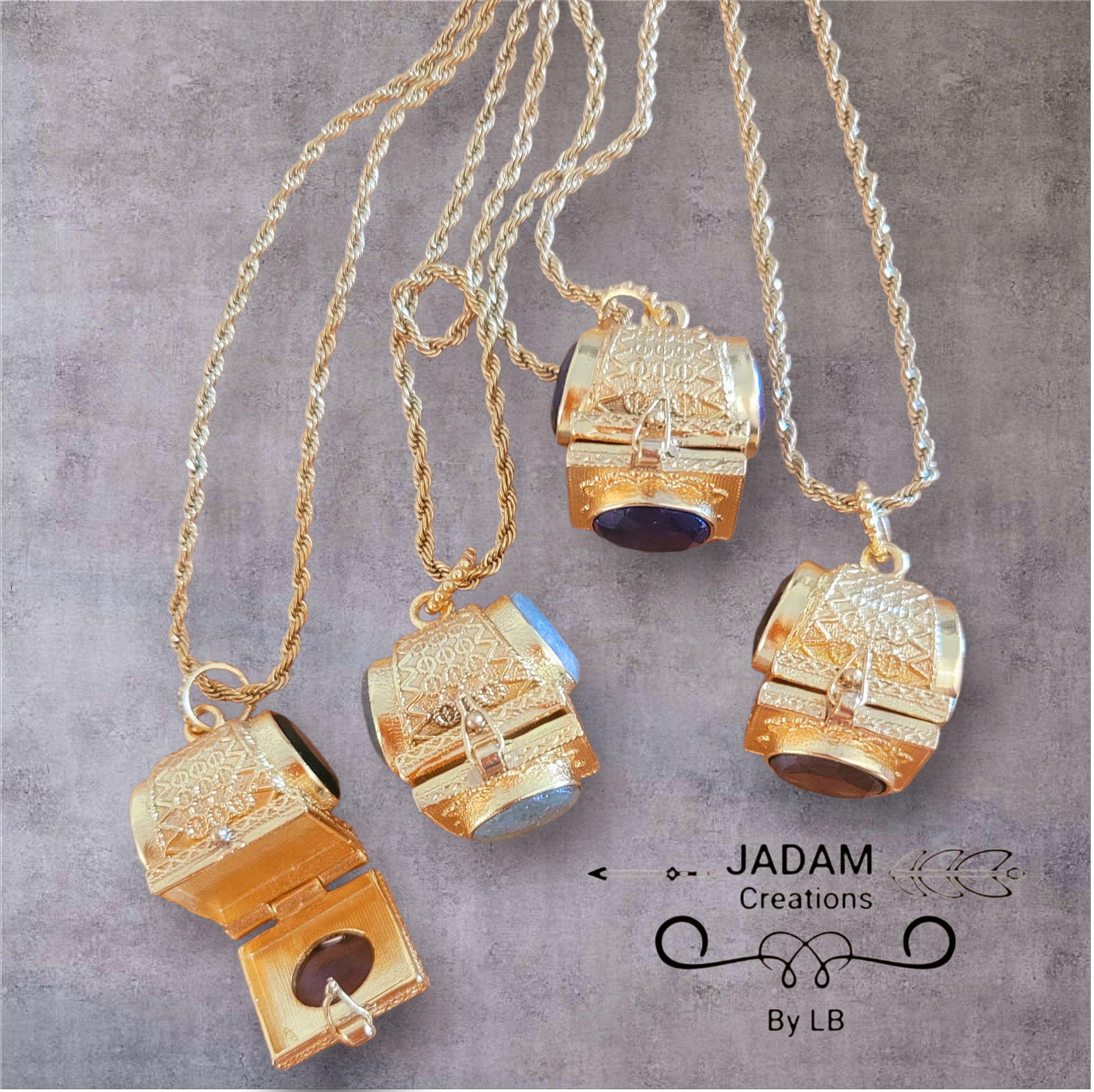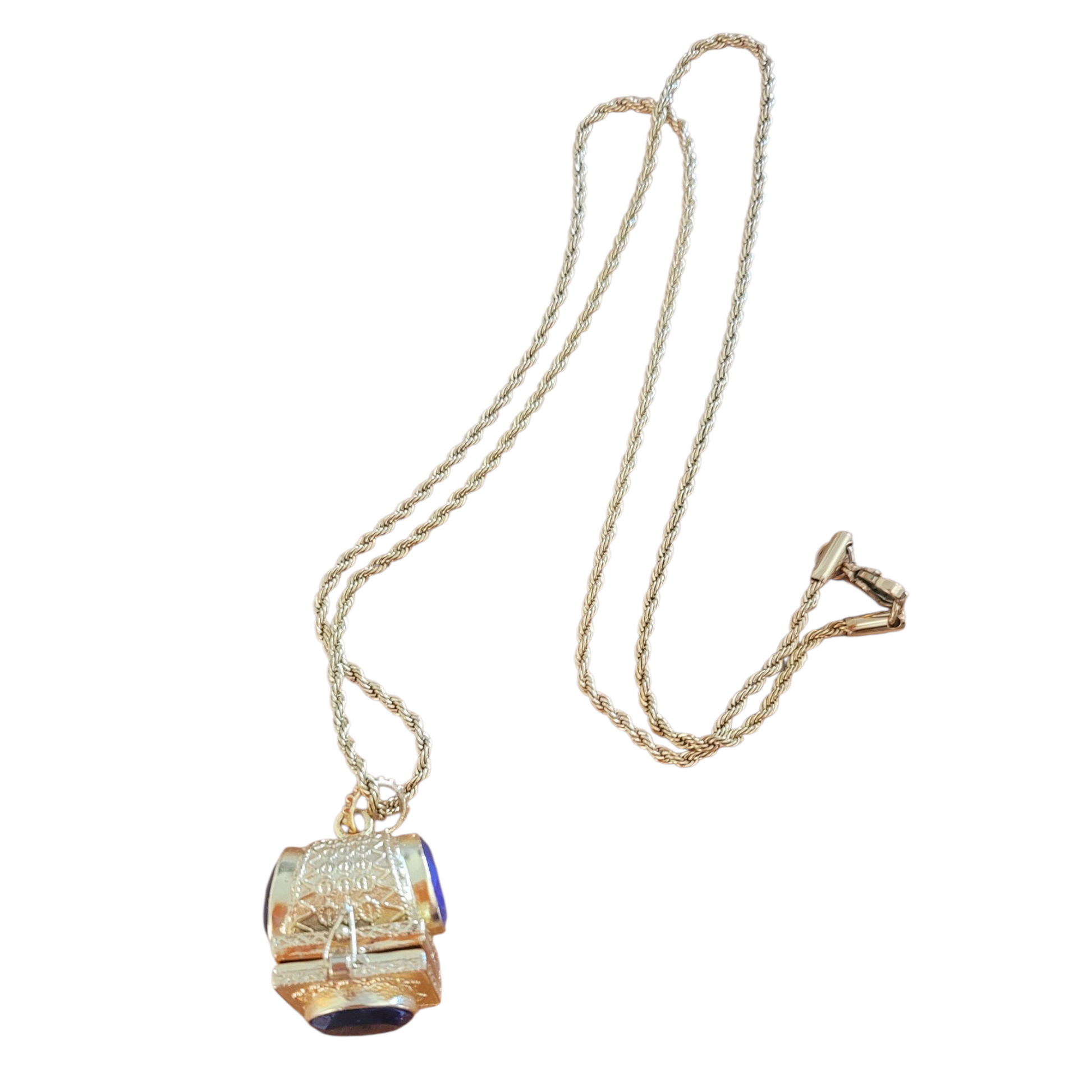 Sautoir maille torsadé avec sont exceptionnel pendentif fonctionnel qui s'ouvre ppur y glisser votre grigris porte bonheur ou photo , serti de pierre qemie précieuse naturelle dessiné dans notre atelier en France sur la Côte d'Azur il a était conçus par nos artisans Indiens à jaipur.