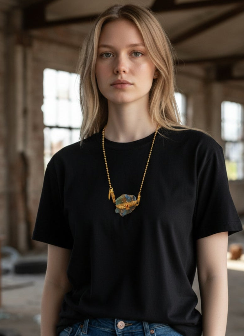 Pavé turquoise d'Arizona brute serti d'un aigle totem en plaquee or