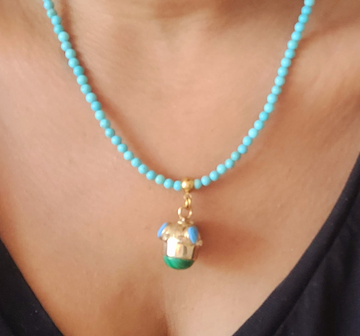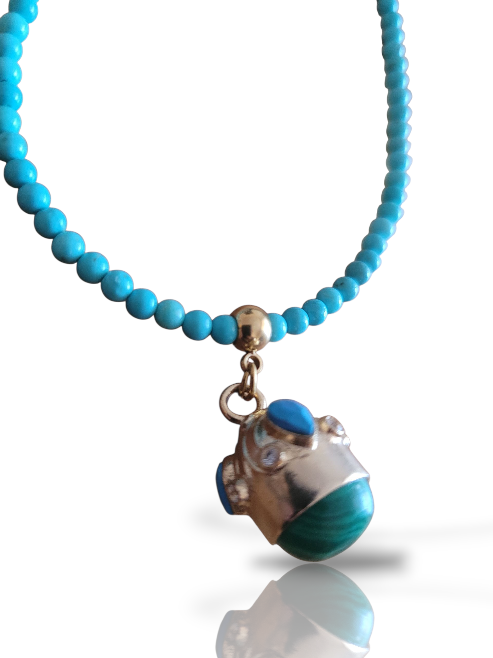 Collier en véritable agathe turquoise avec un DALA en plaquee or 14k dessiné dans notre atelier en France sur la Côte d'Azur er façonné en Inde par nos artisans à jaipur.