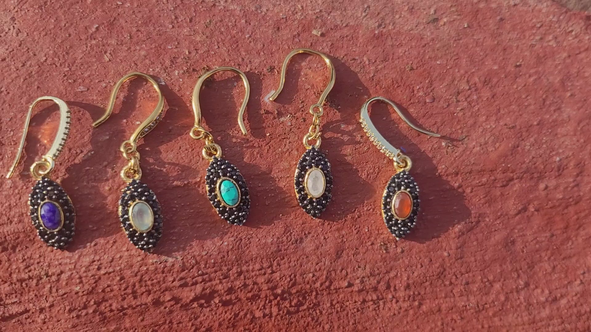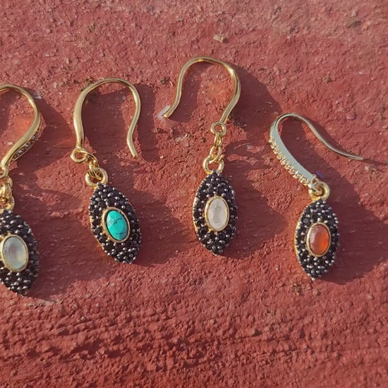 Mono boucles d'oreilles en plaquée or et pavé sertis fe véritable spinelle noir et pierre selie précieuse naturelle.